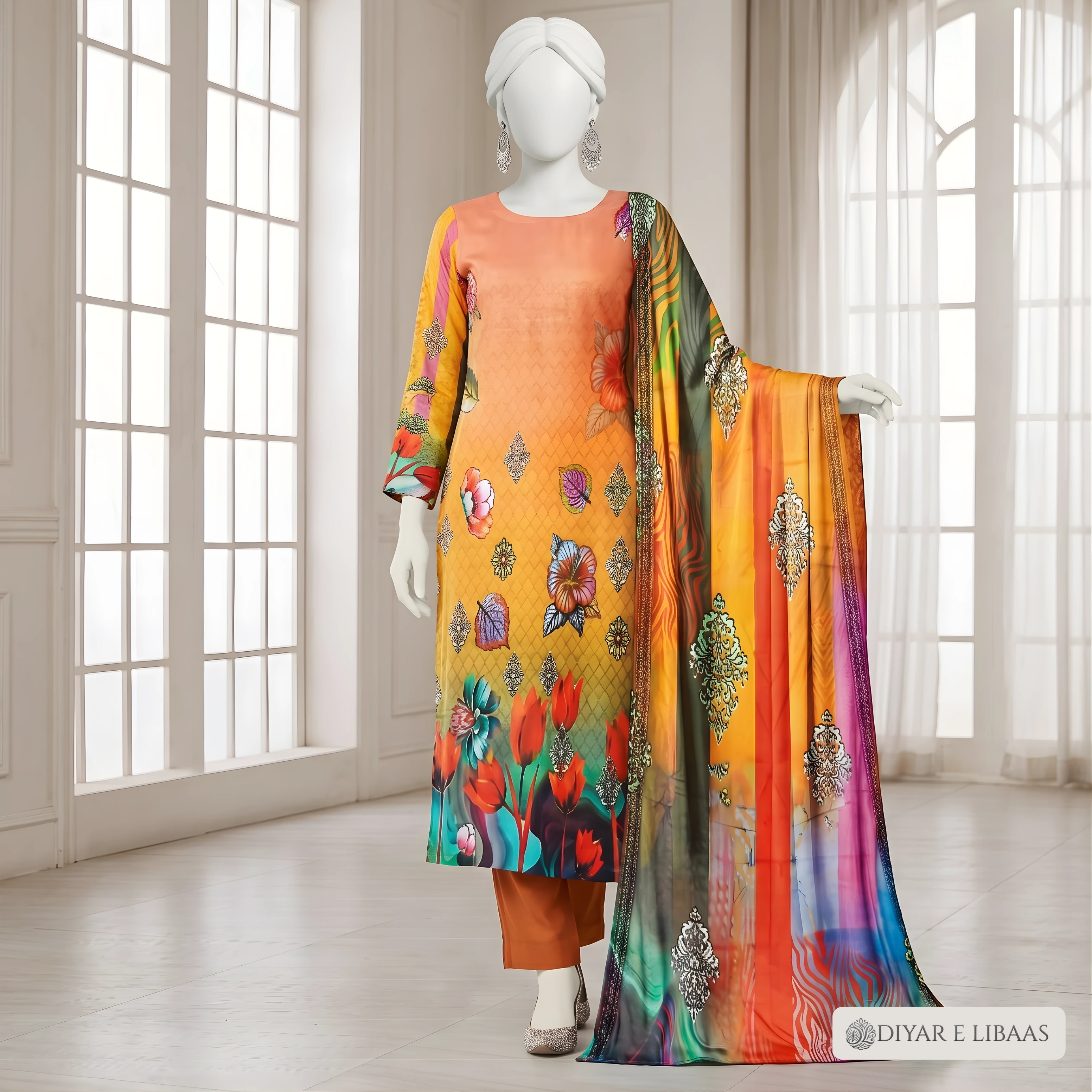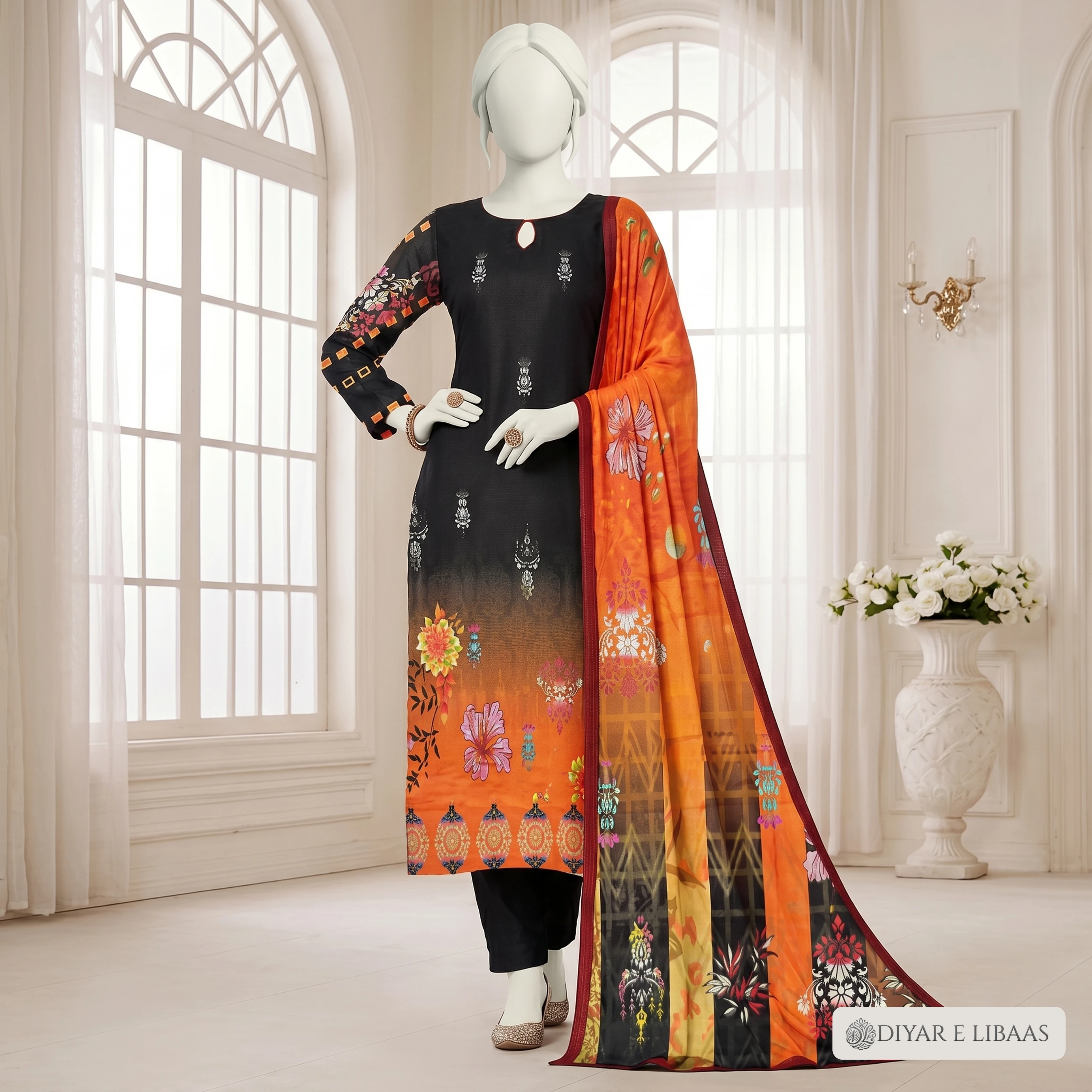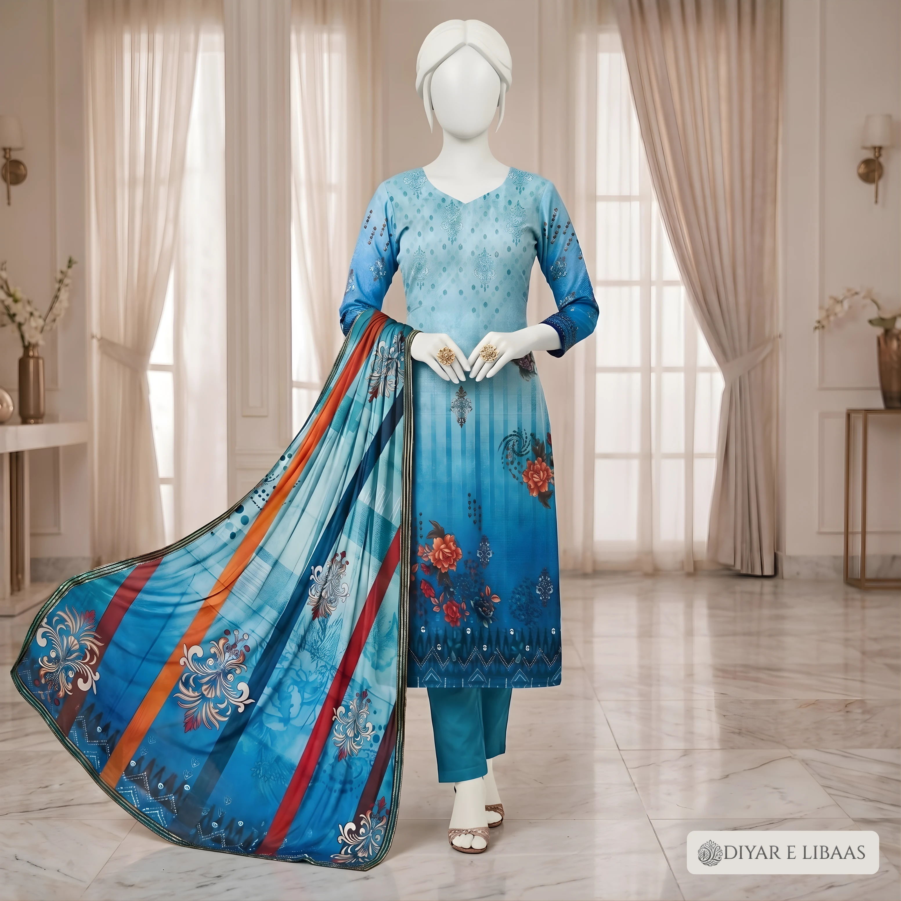 At Diyar-e-Libaas, we believe luxury should be accessible. This collection features high-definition digital prints on ultra-soft fabric, paired with a stunning Tussal Dupatta that adds an air of sophistication to your look. Whether it's for a formal gathering or a stylish day out, these suits offer the perfect blend of comfort and high-end fashion.