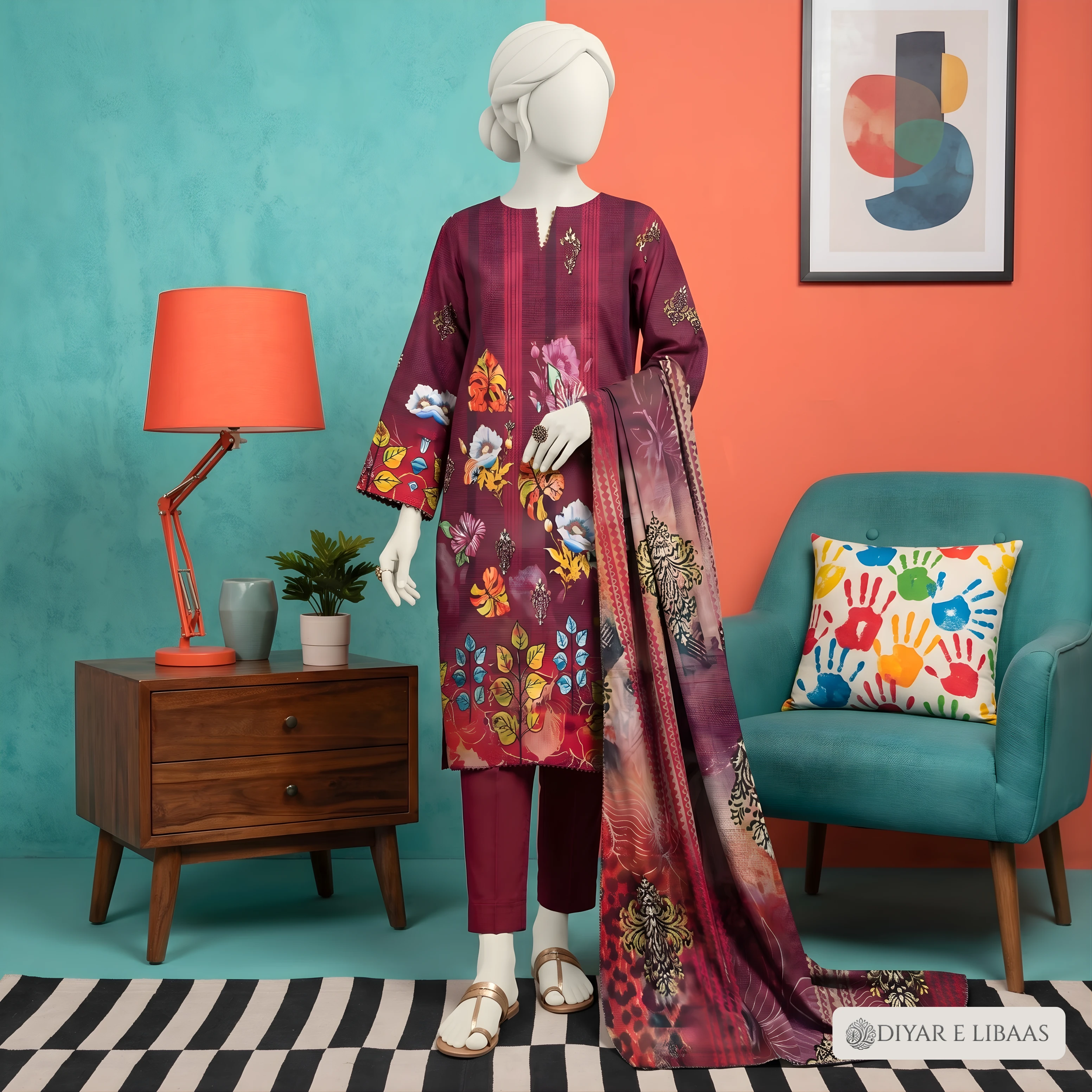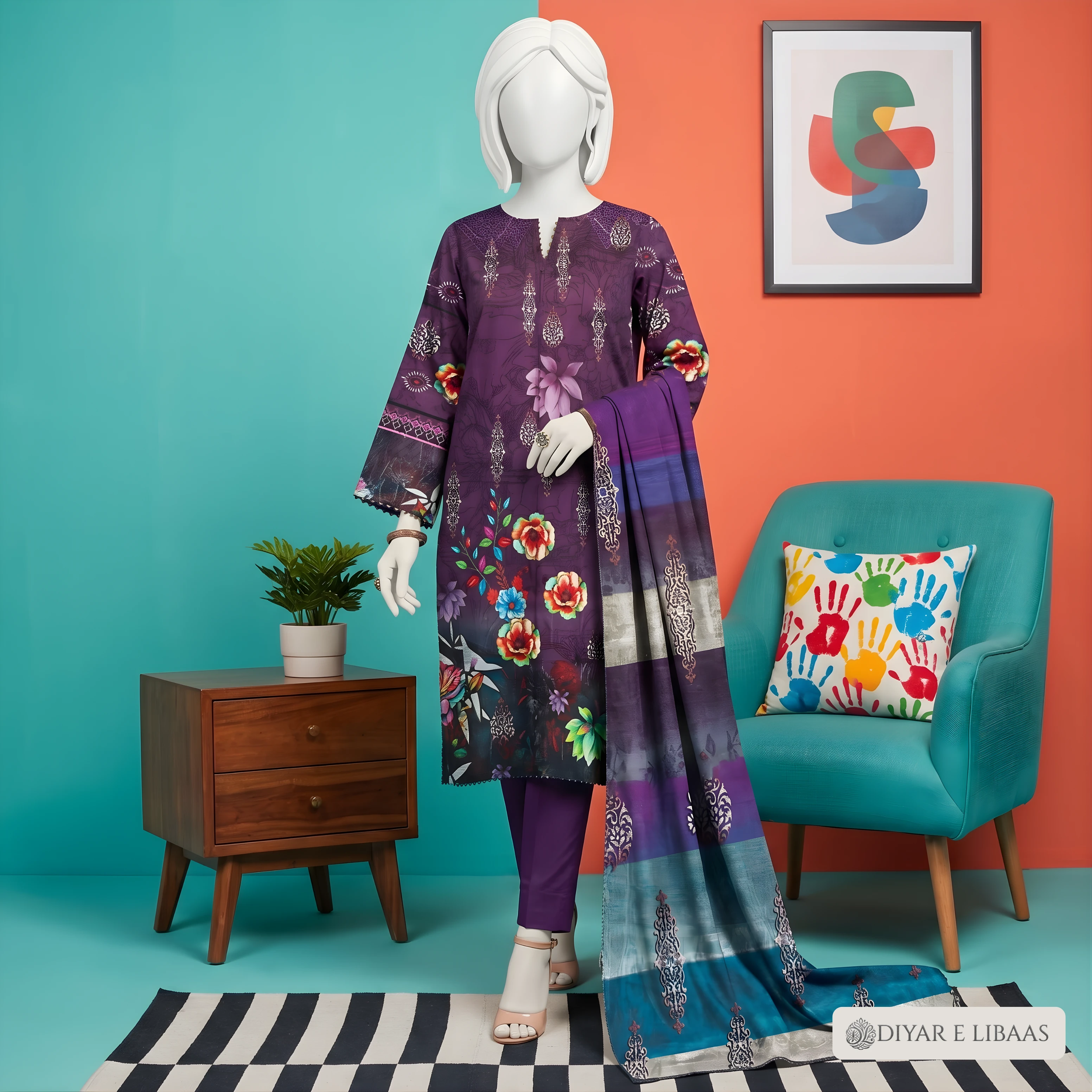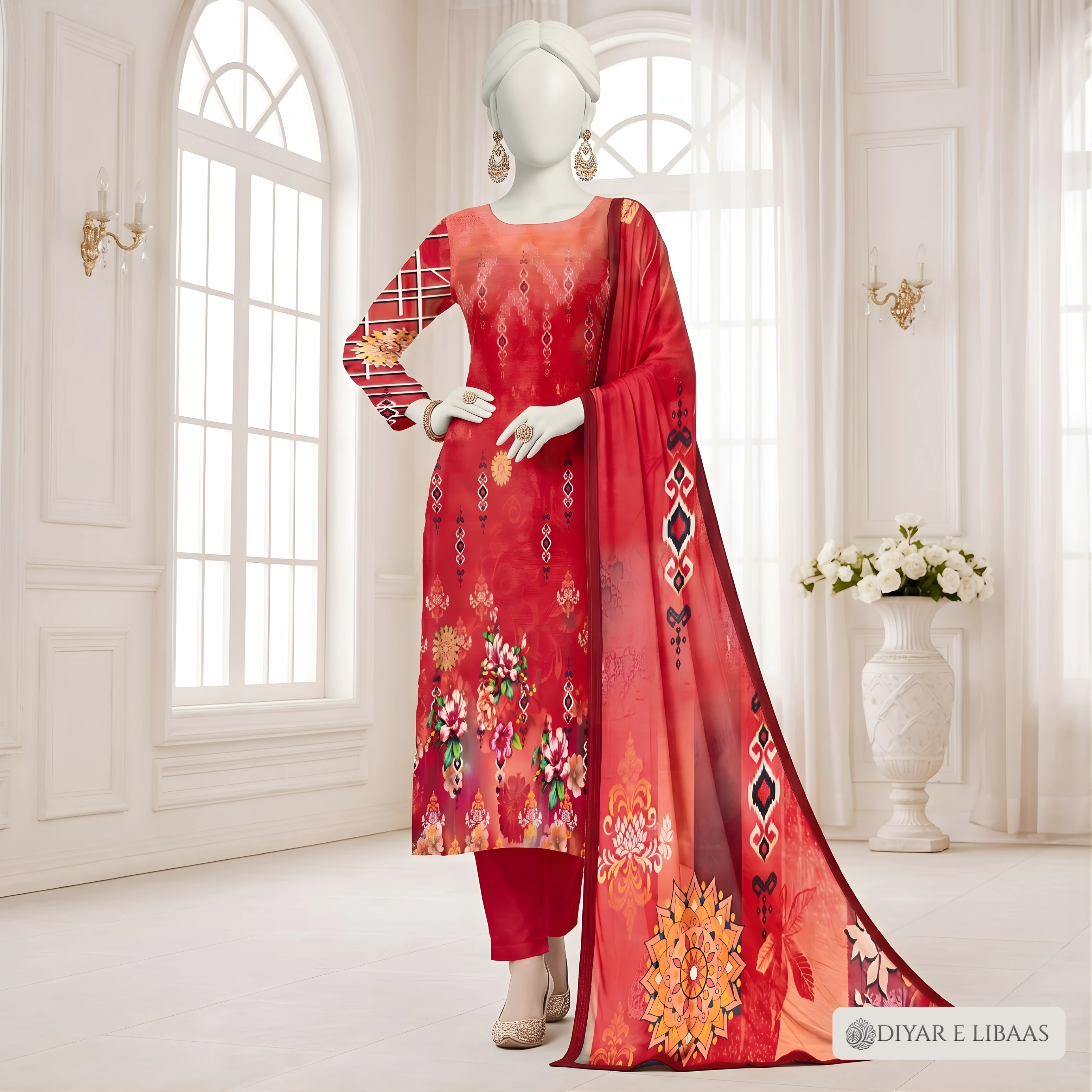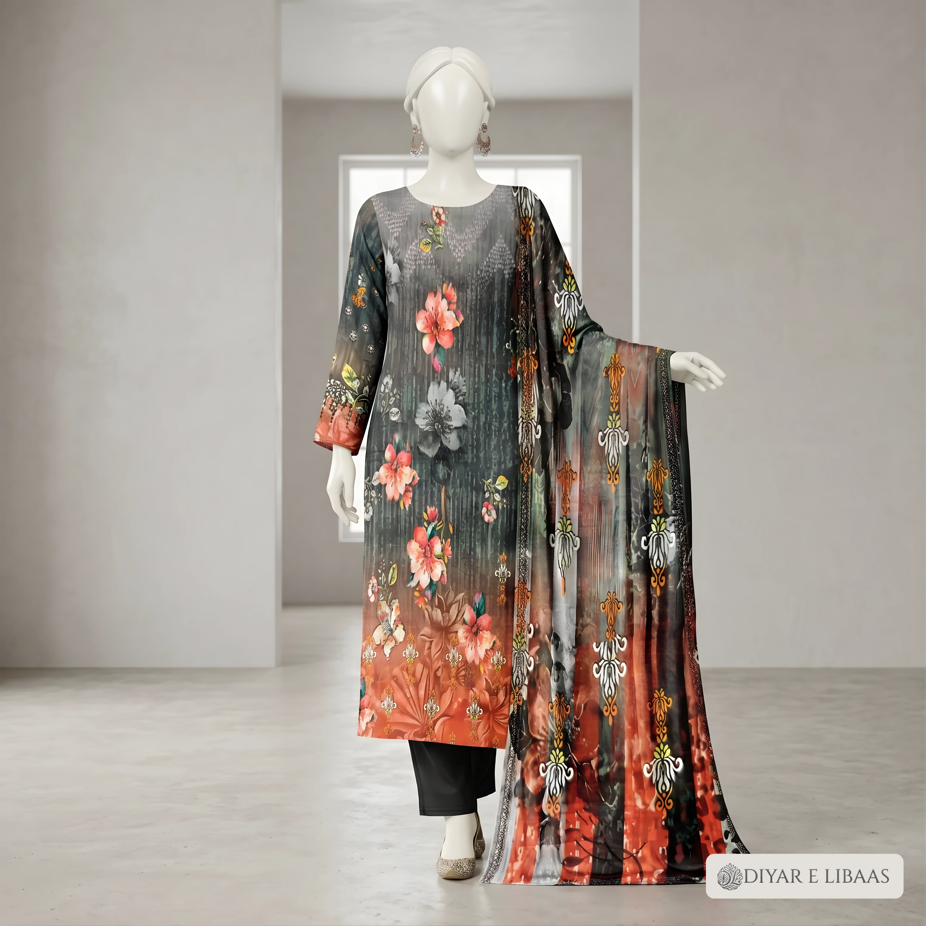 At Diyar-e-Libaas, we believe luxury should be accessible. This collection features high-definition digital prints on ultra-soft fabric, paired with a stunning Tussal Dupatta that adds an air of sophistication to your look. Whether it's for a formal gathering or a stylish day out, these suits offer the perfect blend of comfort and high-end fashion.